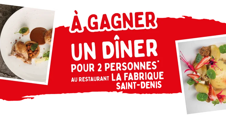 Tentez votre chance pour remporter un repas pour 2 personnes au restaurant LA FABRIQUE. De l’entrée au dessert, laissez-vous surprendre et succombez à un repas en « 6 fabrications ».